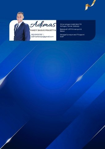 i d m s a Adimas AA d i m a s Griya ketegan indah blok F/5 Ketegan, Taman ,Sidoarjo FANDY BAGUS PRASETYA Bekerja di KJPP Firmansyah & Rekan 082131930787 / Sebagai Surveyor and IT Support adimasfandyb@gmail.com Staff